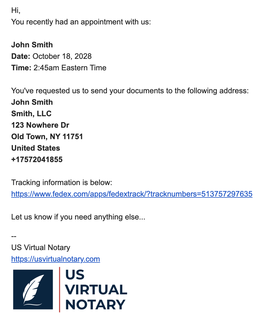 After scheduling, your confirmation email will provide a mailing address to which you can ship your document(s). This email will also contain a cover sheet to be included in the package. This allows us to quickly correlate your documents to your order and process them as quickly as possible.