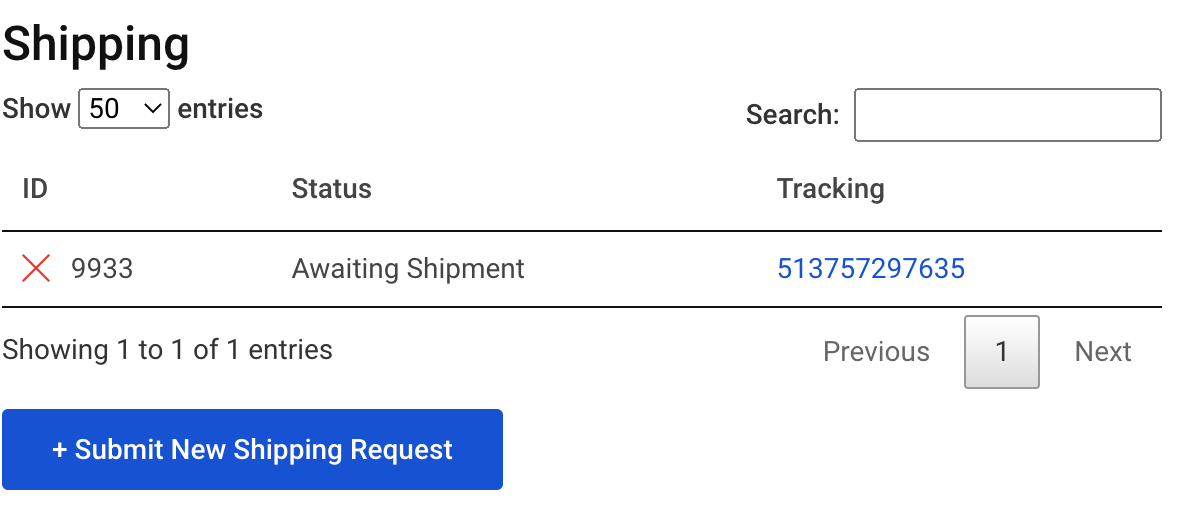You may view & pay for any outstanding requests or you may initiate a new shipping request as desired.